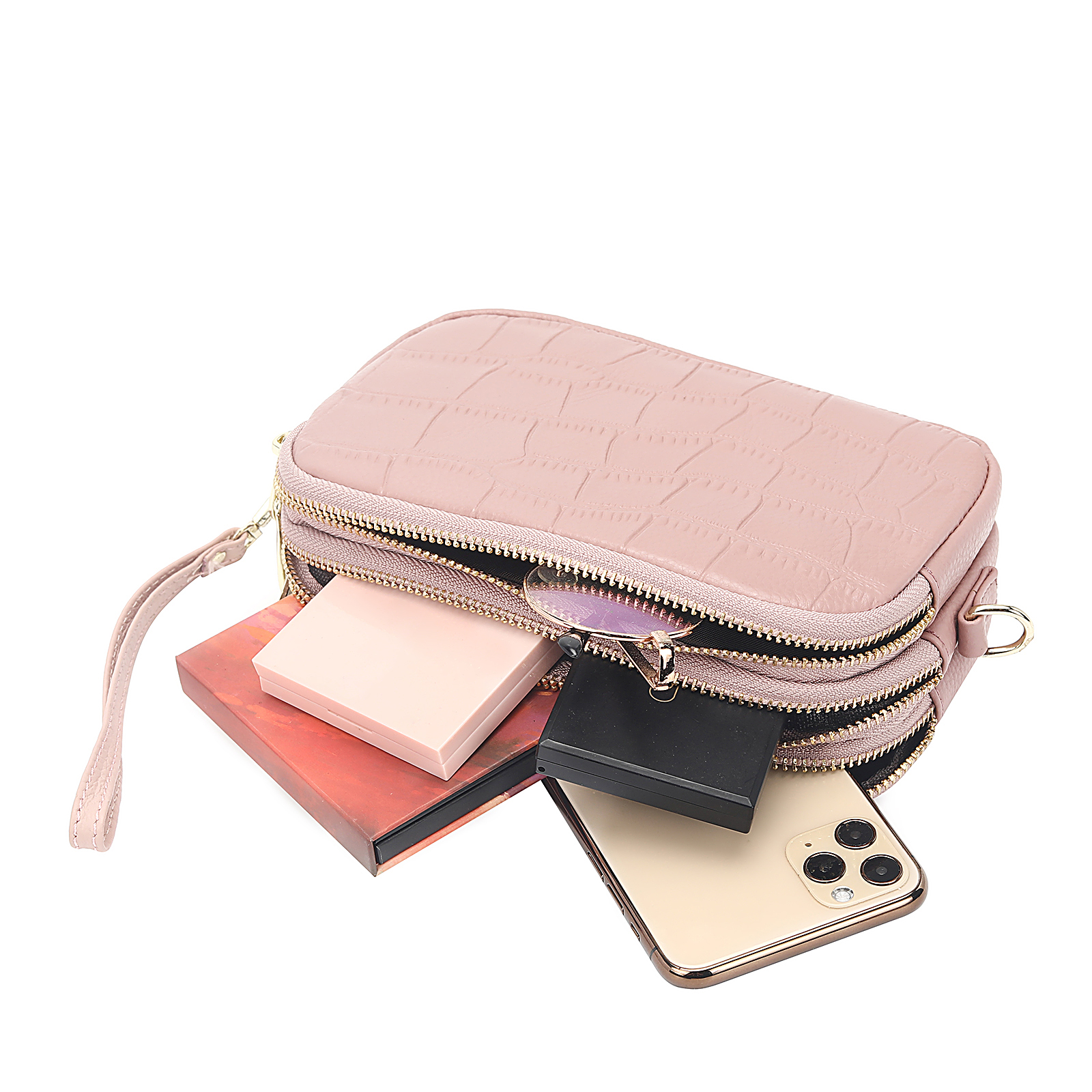 Croco Embossed Leather Cross Body Bag